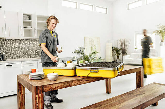 Einpacken der zerbrechlichen Gegenstände oder des gesamten Hausrates in Umzugkartons